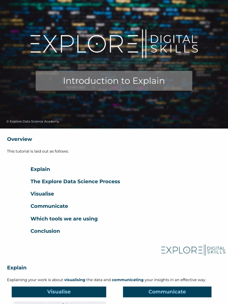 Explaining your work is about visualising the data and communicating your insights in an effective way.