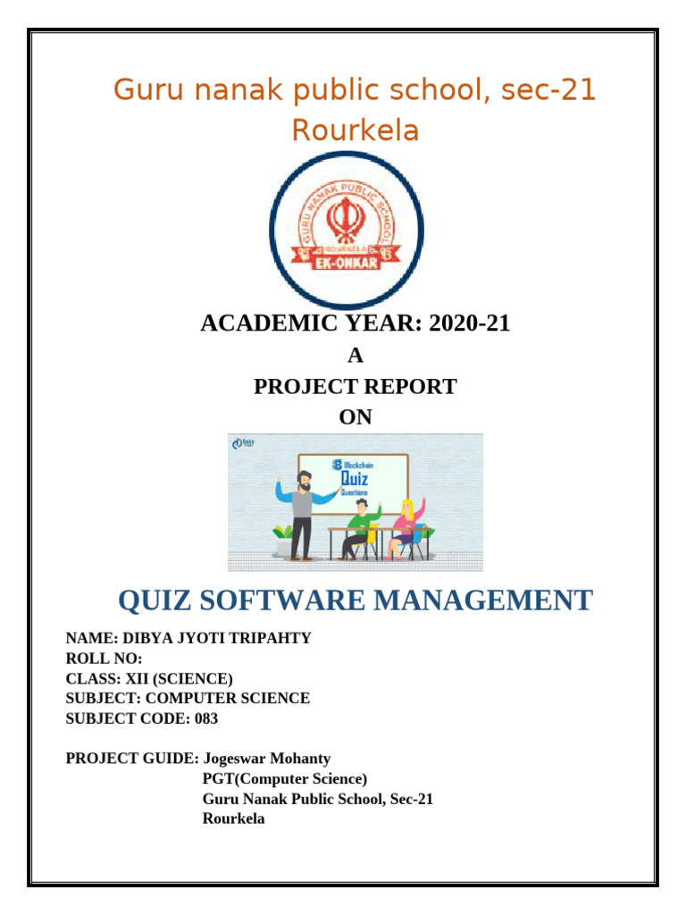 2. A Project Report On QUIZ SOFTWARE MANAGEMENT SYSTEM.