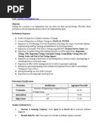 3 years of diverse experience in Information Technology with emphasis on Software Quality Hands on experience in Manual testing at all levels of STLC (Software Testing Life Cycle) Extensively proficient in Functional testing, Performance testing, Integration testing, GUI Assurance & Automation Testing