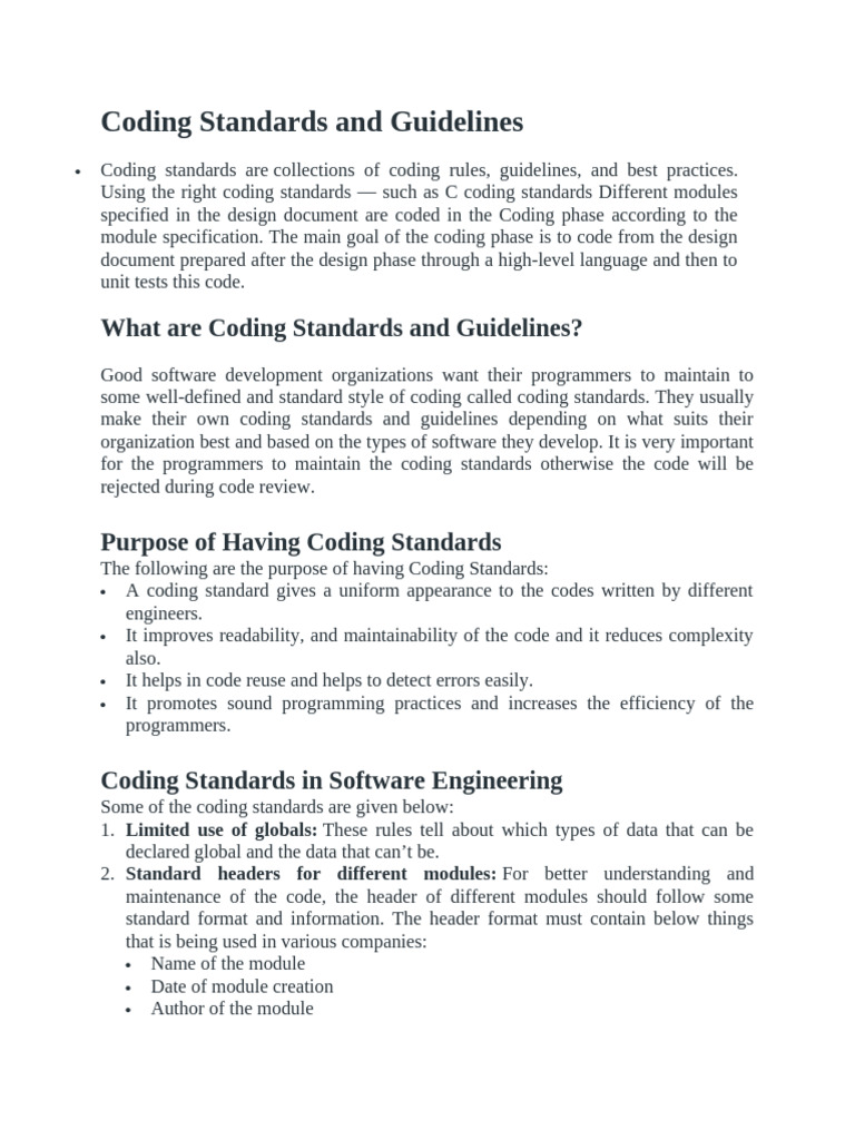 Coding Standards in Software Engineering