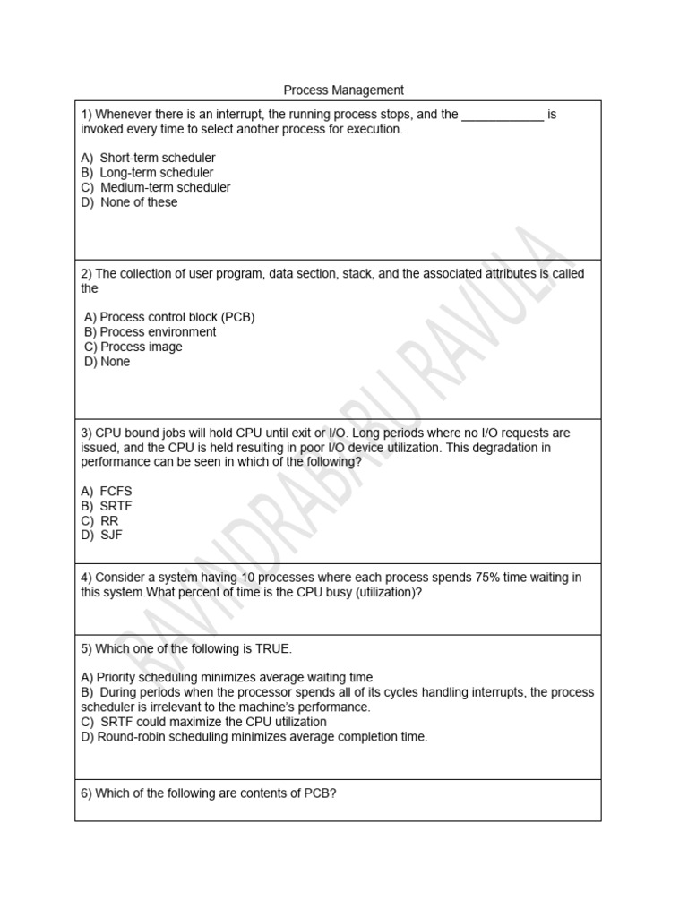 3) CPU bound jobs will hold CPU until exit or I/O. Long periods where no I/O requests are