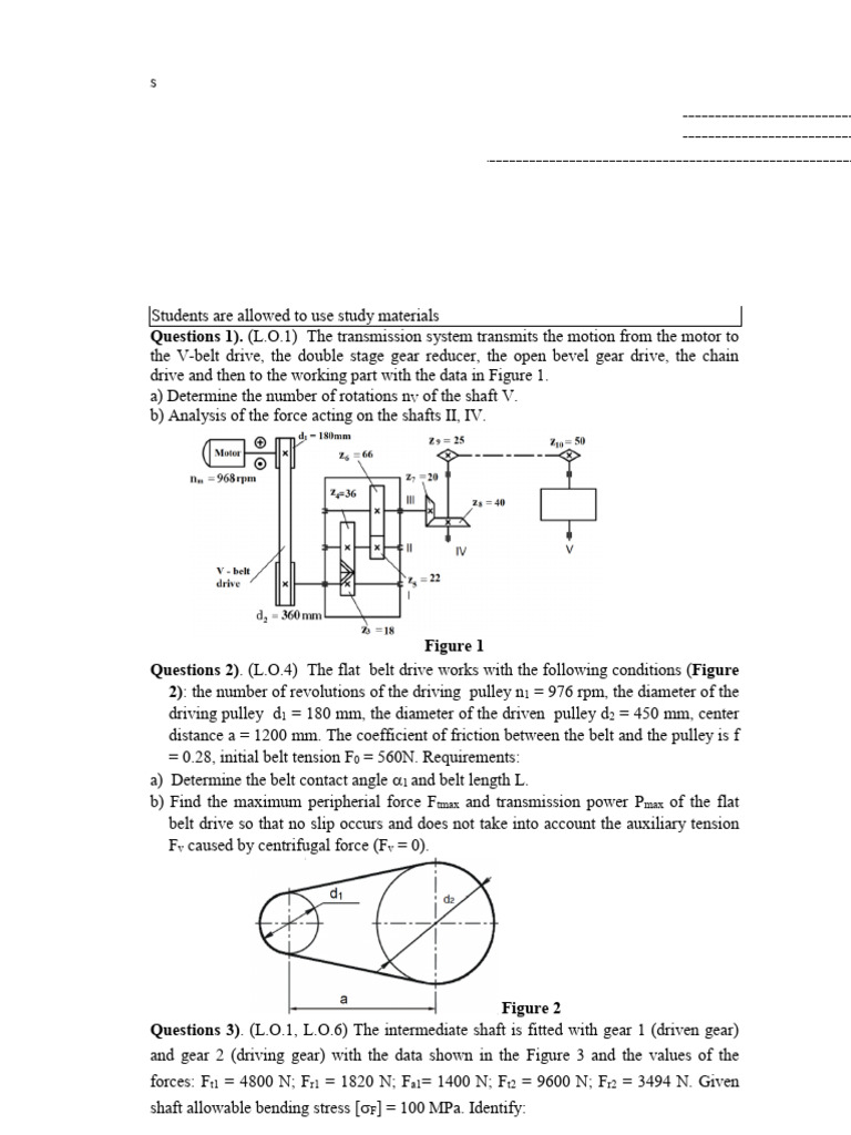 Questions 2). (L.O.4) The flat belt drive works with the following conditions (Figure