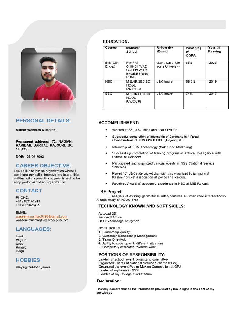 PERSONAL DETAILS: ACCOMPLISHMENT: