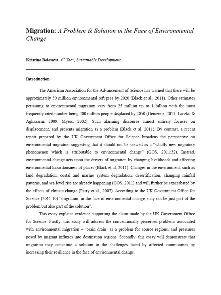 Science (2011:10) “migration, in the face of environmental change, may not be just part of the