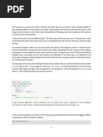 1. “Recursion" is technique of solving any problem by calling same function again and