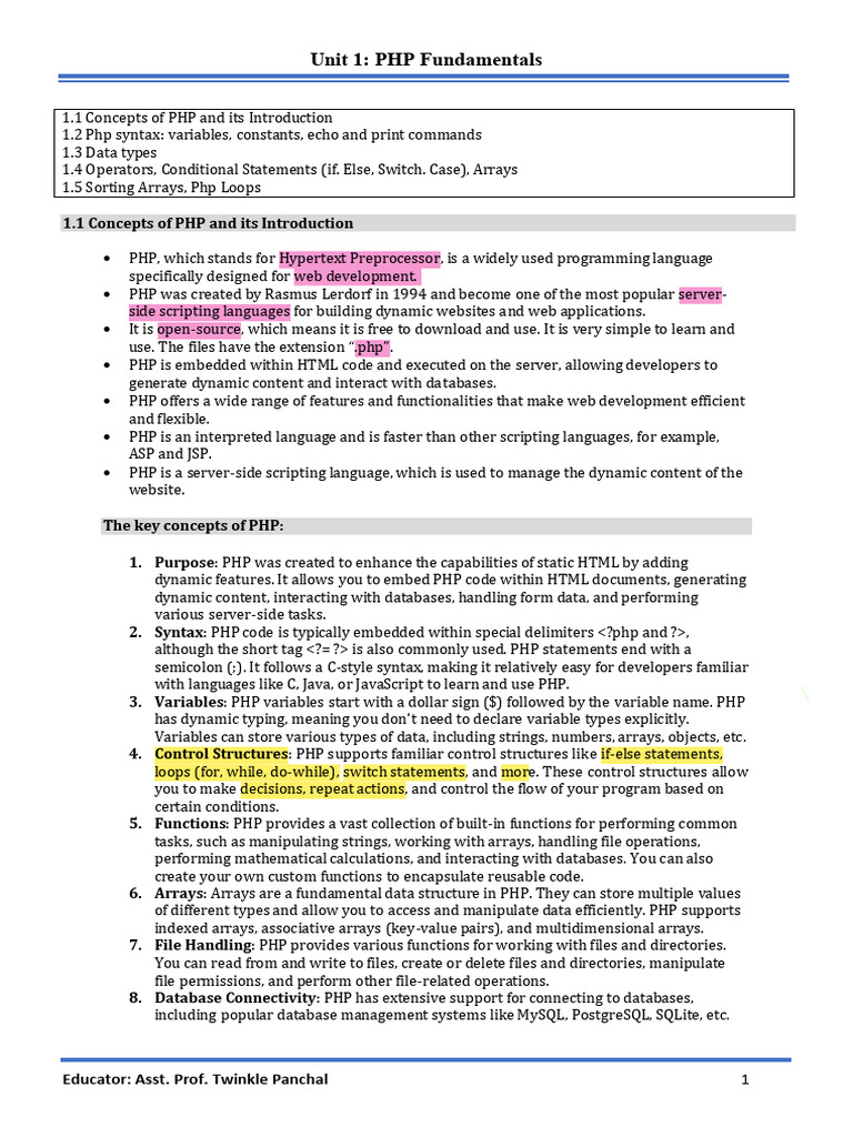 4. Control Structures: PHP supports familiar control structures like if-else statements,