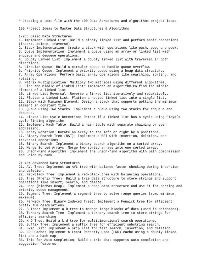 # Creating a text file with the 100 Data Structures and Algorithms project ideas