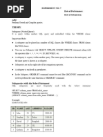 ▪In the Subquery, ORDER BY command cannot be used. But GROUP BY command