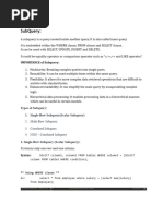 ▪Non-correlated (or Independent) Nested Queries : Non-correlated (or