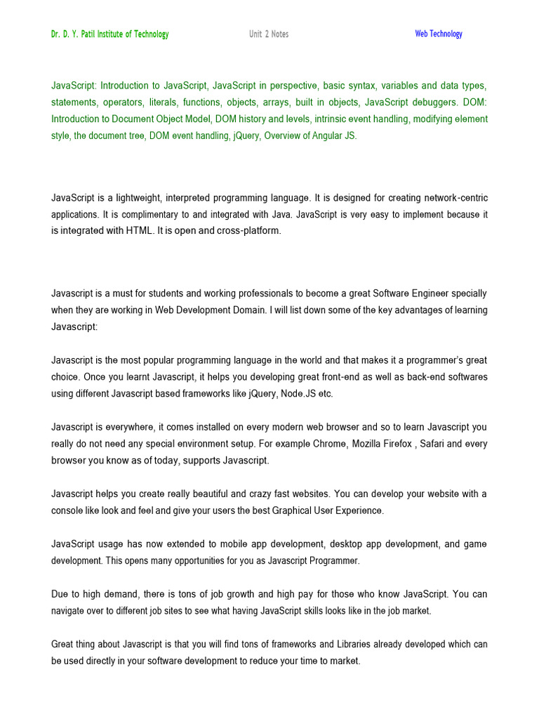 Dr. D. Y. Patil Institute of Technology Unit 2 Notes Web Technology