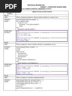Exp. Name: Determine whether the last digit of a SNe number is Even or Odd Date: 2024-03-22 Aim: Jyothi and Sakshi are playing a game in which Jyothi gives a task to Sakshi to print whether the last digit of the number is even or odd. For this Sakshi needs your help. Can you help Sakshi? Input Format: ‘The input line reads an integer representing the number. Output Format: The output line prints whether the last digit is Even or Odd. Source Code: LastDigit. py | print(*Odd” if int(input("Enter a number: "))%2 else “Even") In Results - All test cases have succeeded! Test Case - 1 User Output Enter a number: 1234 Even Test Case - 2 User Output Enter @ number 5019 odd 23CSC25_ Page No: 1 1D: BNM Institute Of Technology 2023-27-CSE-CExp. Name: Compare two numbers using nested S.No: 2 : conditionals Date: 2024-03-22 im: ‘Amit is someone who frequently finds himself comparing various things. He recently encountered a situation where he needed to compare two numerical values repeatedly. To simplify this process, he decided to write a Python program. He aims to develop a program that swiftly determines whether the first number is greater, lesser, or equal to the second. With this program, Amit hopes to streamline his comparison tasks and save valuable time. ‘Could you assist Amit in crafting this Python program? Input format: The first two lines are the integers, Output format: Prints a string indicating whether the first number is greater, lesser, or equal to the second number. Source Cod compareNumbers py a, b = int(input()), int(input()) print(*First number is greater" if a>b else "Both numbers are equal” if at umber is lesser") b else “First Execution Results - all test cases have succeeded! Test Case - 1 User Output 8 5 First number is greater Test Case - 2 User Output 19 85 First number is lesser Test Case - 3 User Output 10 10 Both nunbers are equal 23CSC25_ Page No:2 1D: BNM Institute Of Technology 2023-27-CSE-CS.No: 3 Exp. Name: Eldest of three Date: 2024-03-22 Ina classtoom, there are three students of varying ages. The teacher, who is responsible for the class, has a specific task at hand to determine the oldest student among the three. To achieve this, the teacher plans to develop a Python program that takes the ages of the students as input and identifies the eldest among them, Could you help the teacher in crafting this Python program? Input format: The first three lines are the integers that represent the ages of the three students. Output format: The output is the integer that represents the age of the elder student, Source Cod eldestAge.py a,b, © = Ant(input()), intCinput()), int(input()) print(a 1f (arb and arc) else b if (b>a and b>c) else c) Execution Results - All test cases have succeeded! Test Case - 1 User Output 12 14 3 1 Test Case - 2 User Output u 43 23 43 Test Case - 3 User Output 4 19 7 19 23CSC25_ Page No: 3 1D: BNM Institute Of Technology 2023-27-CSE-CS.No: 4 Exp. Name: Factorial Calculator Date: 2024-03-22 Aim: Sophia is working on a program to calculate the factorial of a given number. For that, she wants to implement a function called calculate factorial that takes a positive integer as input and returns its factorial Input format: The input is an integer. Output format: ‘The output is the integer that represents the factorial of the user-given integer. def calculate_factorial (nunber) return number if numberc=1 else nunber*calculate_factorial(number-1) user_number = int (input()) factorial_result = calculate_factorial(user_nunber) print (factorial_result) Execution Results - All test cases have succeeded! Test Case - 1 User Output 10 3628800 Test Case - 2 User Output 6 72 23CSC25_ Page No:4 ID: BNM Institute Of Technology _2023-27-CSE-CS.No: 5 Exp. Name: Fibonacci series. Date: 2024-03-22 ‘Ata local community center, a math club is hosting a workshop to introduce students to the concept of Fibonacci numbers, The workshop aims to inspire students’ interest in mathematics by demonstrating the beauty and simplicity of this famous sequence. ‘As part of the workshop, the organizers plan to demonstrate how to generate the Fibonacci series programmatically using Python. Imagine you have participated in the workshop and you are tasked to write a Python program for that, Can you able to write it?” Input format: The input is the integer n. output format: ‘The output is the n terms of the Fibonacci series. Source Cod fibonacci.py fib = lambda n : nif n c= 1 else (Fib(n-1) + #4b(n-2)) print(*[#Ib(1) for 4 in range(int(input()))], sep =" *, end = * *) Execution Results - All test cases have succeeded! Test Case - 1 User Output a @1i2 Test Case - 2 User Output 10 @1123581321 34 23CSC25_ Page No: 5 ID: BNM Institute Of Technology 2023-27-CSE-CS.No: 6 Exp. Name: Binary Coded Decimat Date: 2024-03-23 Aim: Rani, who loves electronics, is exploring digital electronics and learning about different ways of representing numbers in binary code. Her teacher gave her a task to convert a number into Binary Coded Decimal (BCD) format. Can you help Rani with this task? BCD representation: BCD represents each decimal digit with a 4-bit binary code, Let us find the BCD representation of 15, 1 in binary format - 0001 5 in binary format - 0101 So the BCD representation is 00010101 Input format: The input isthe integer. Output format: The output is the BCD representation of the given integer. Source Code: bei y d= {'@': e000", '1': ‘oee1", '2': ‘oe1e", '3': ‘eoI1", ‘4': ‘e1e0", ‘ese’, "7": ‘eta1", ‘100@', *9": ‘1001'} print("'.Join(d[i] for i in input())) e101", in Results - All test cases have succeeded! Test Case - 1 User Output 15 eeeieie1 Test Case -2 User Output 253 eei9eie1e0i1 23CSC25_ Page No: 6 1D: BNM Institute Of Technology 2023-27-CSE-CS.No: 7 Exp. Name: Store the marks in the dictionary Date: 2024-03-22 Aim: Imagine you are a teacher at a high school, and you need to record the names and marks of N students for a recent exam. To strea