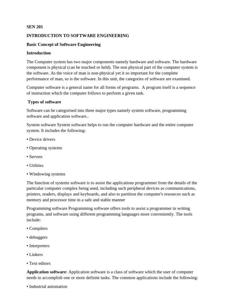 Software Engineering is the application of engineering to software. This unit looks at its goals