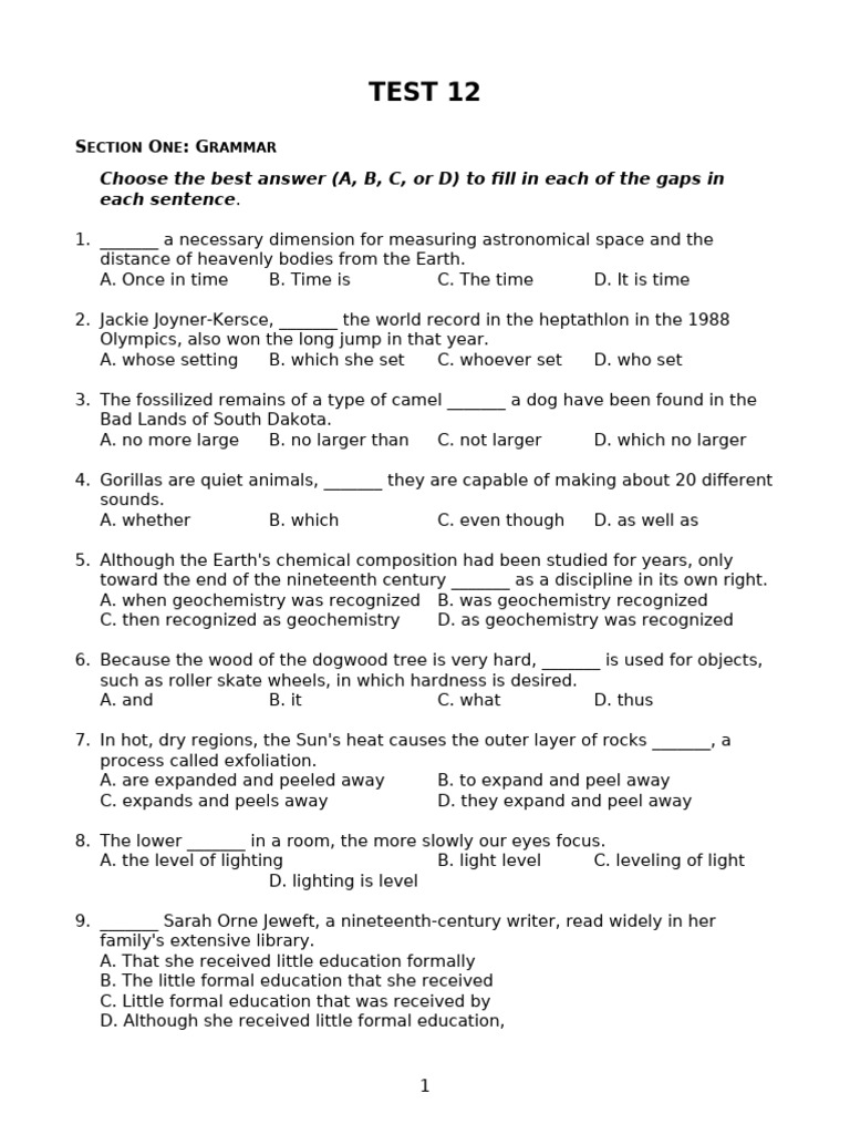 Choose the best answer (A, B, C, or D) to fill in each of the gaps in