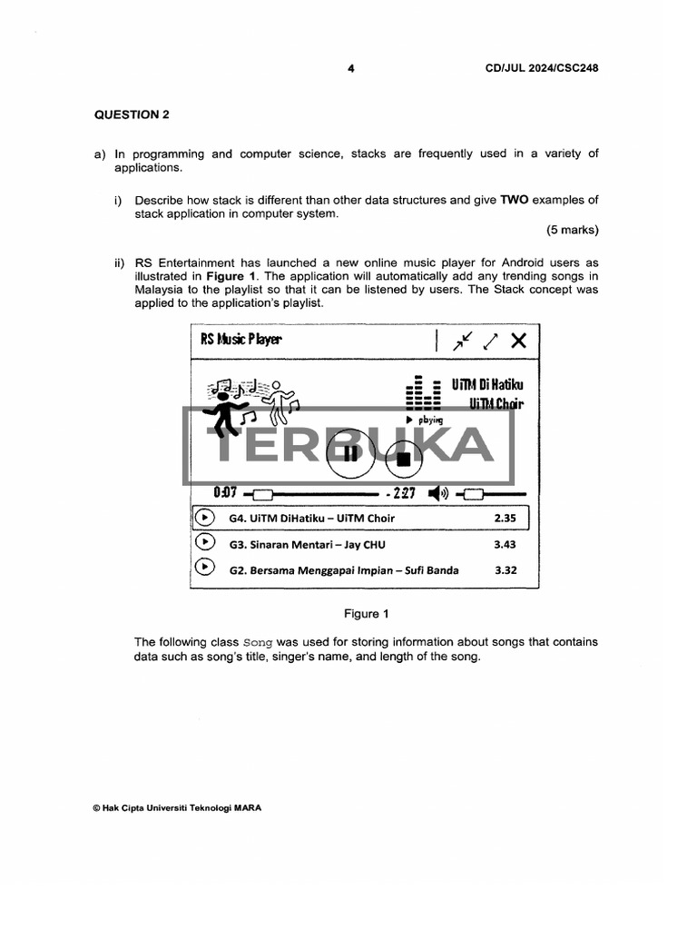T and length of the song is greater than 3 minutes. (Note: use a temporary stack to