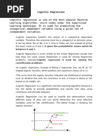 o Logistic regression is one of the most popular Machine Learning algorithms, which