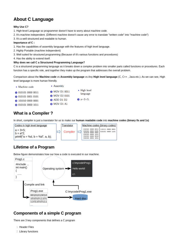 C is a structured programming language as it breaks down a complex problem into smaller parts called functions or procedures. Each
