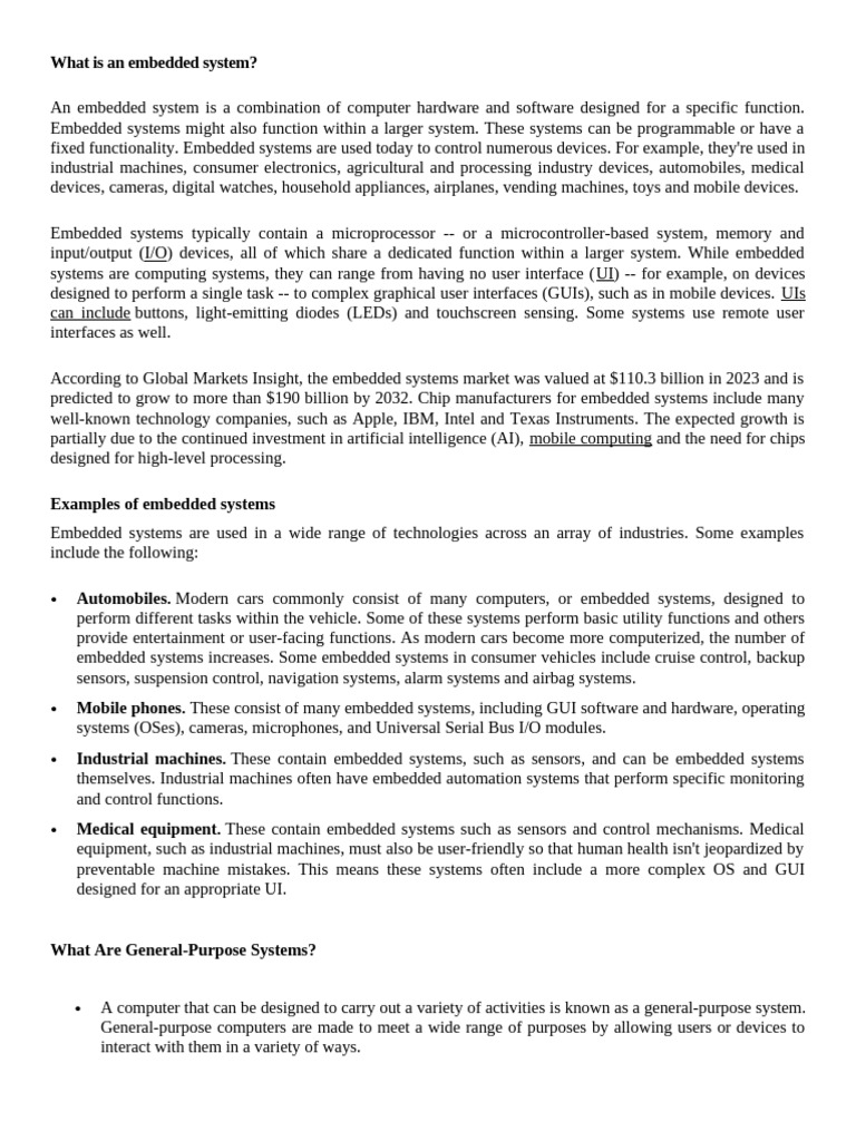 fixed functionality. Embedded systems are used today to control numerous devices. For example, they're used in