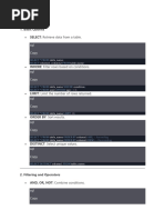 ● Count rows: SELECT COUNT(*) FROM tablename;