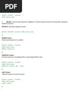 ● Having clause: SELECT col1, col2, COUNT(*) FROM tablename GROUP BY col1, col2