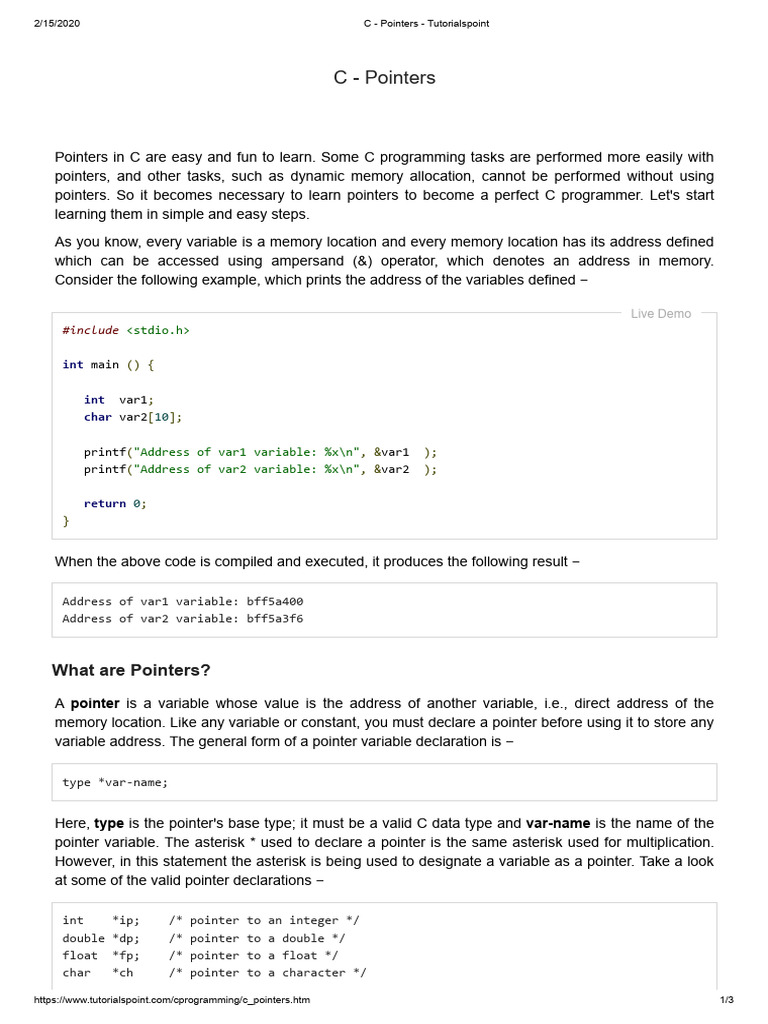 https://www.tutorialspoint.com/cprogramming/c_pointers.htm 3/3
