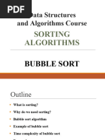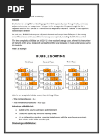 covers how Bubble Sort works by repeatedly comparing and swapping adjacent