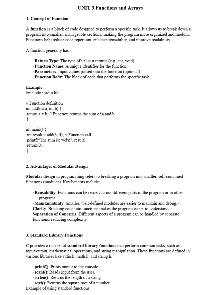 ∙ Reusability: Functions can be reused across different parts of the program or in other