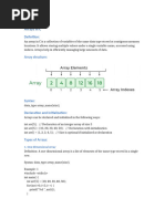 An array is a collection of elements of the same type stored in contiguous memory locations. It
