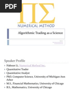 Quantitative trading is the trading of securities based strictly on the buy/sell