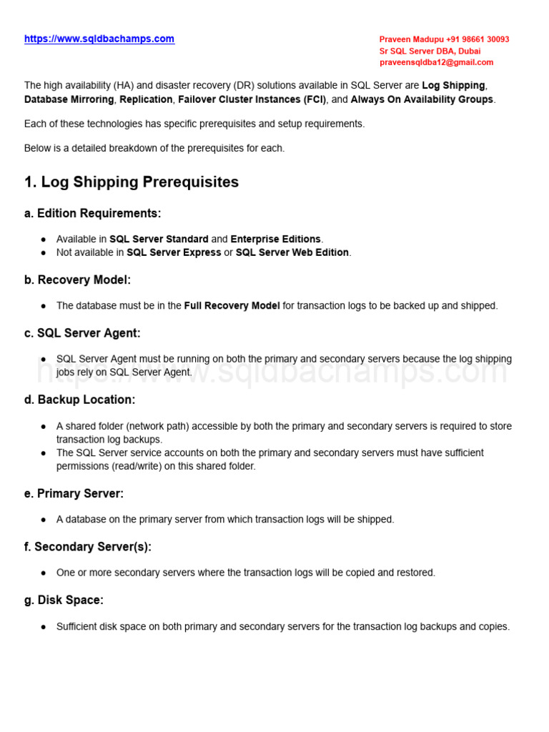 Ensure that these prerequisites are met before configuring any HA or DR setup in SQL Server to avoid common