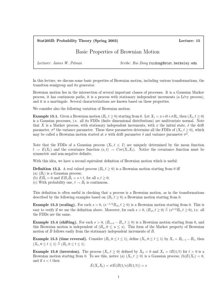 Stat205B: Probability Theory (Spring 2003) Lecture: 15