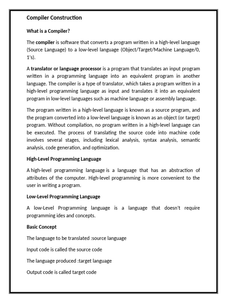 (Source Language) to a low-level language (Object/Target/Machine Language/0,