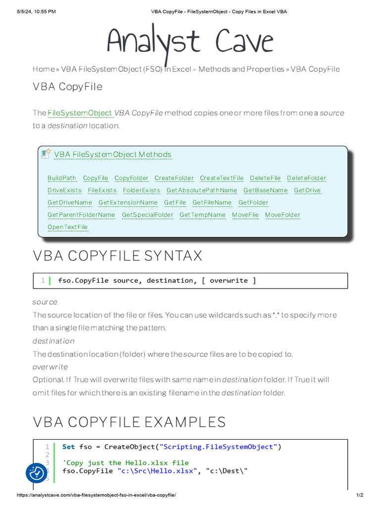 5/5/24, 10:55 PM VBA CopyFile - FileSystemObject - Copy Files in Excel VBA