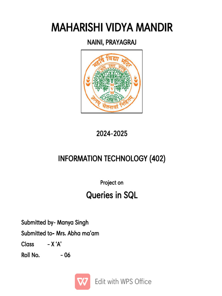 Information Technology (402) on topic “Queries in SQL” and helped me in