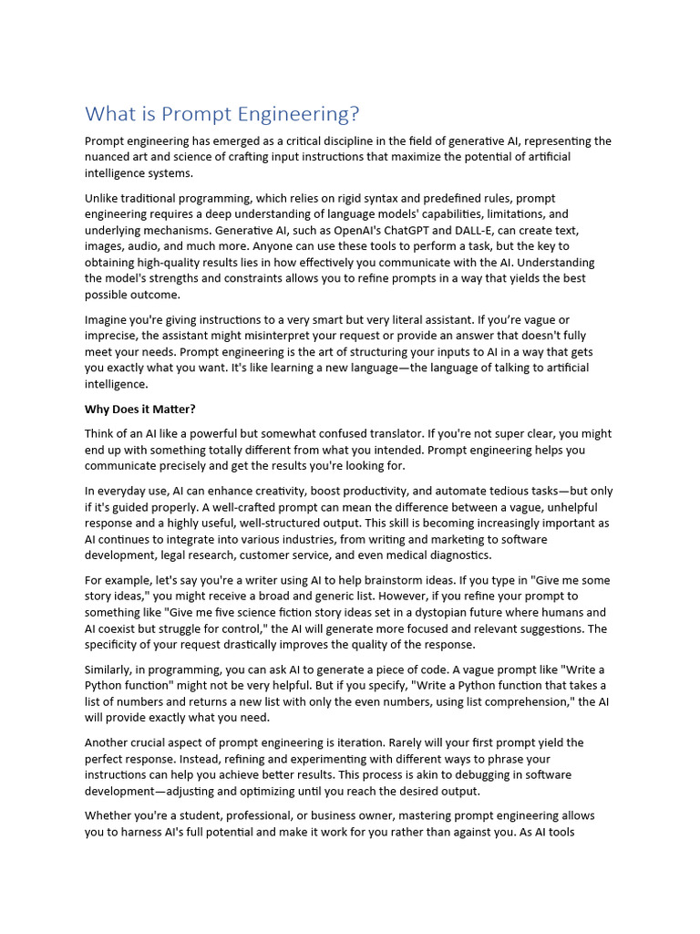 Whether you're a student, professional, or business owner, mastering prompt engineering allows