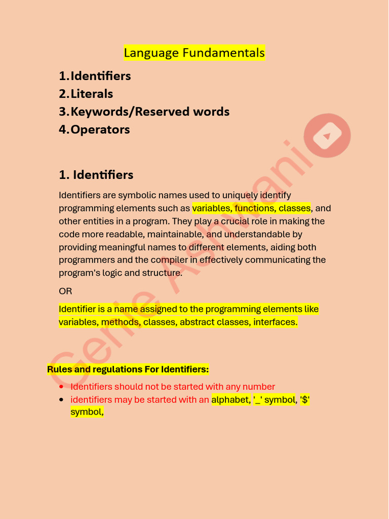 • identifiers may be started with an alphabet, '_' symbol, '$'
