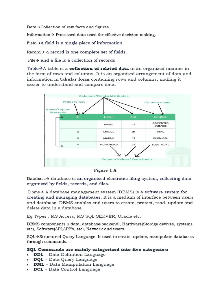 DBMS components data, database(backend), Hardware(Storage devives, systems