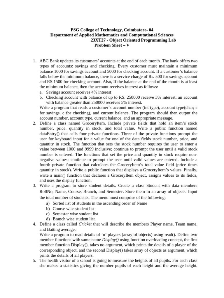 RollNo, Name, Course, Branch, and Semester. Store them in an array of objects. Input