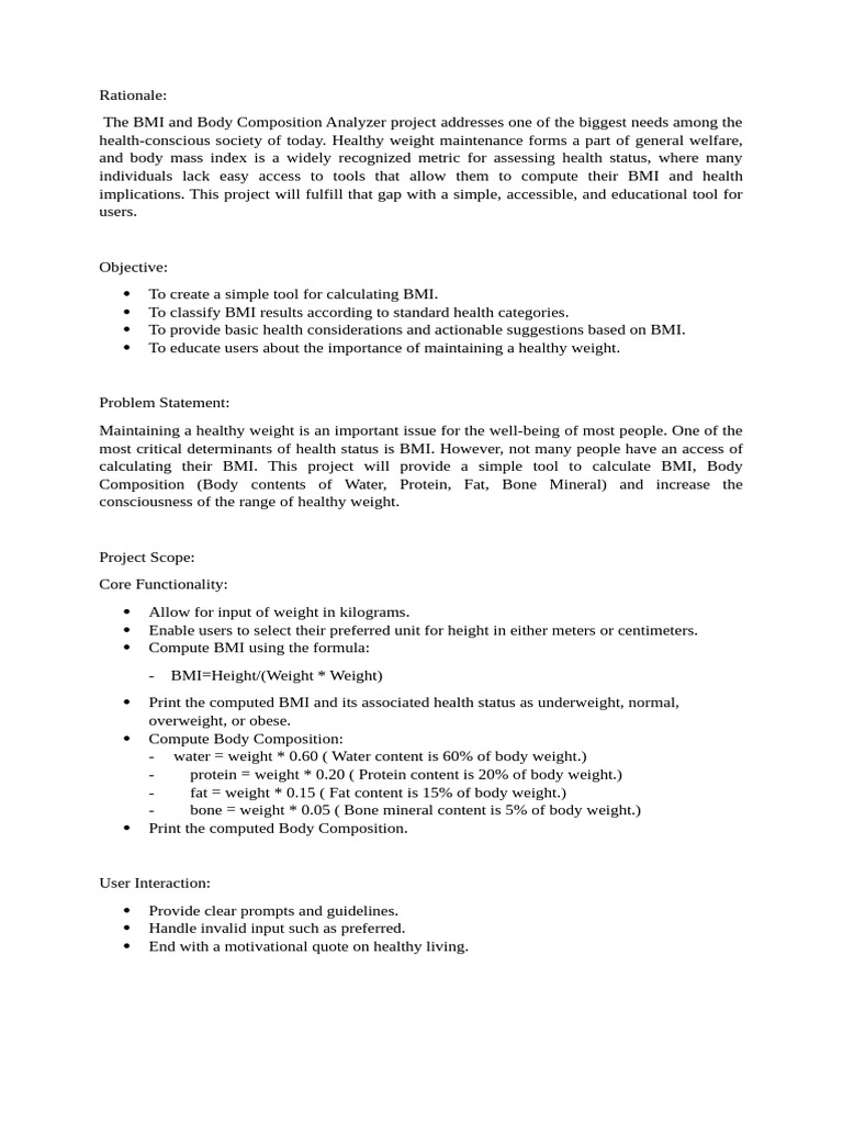 Rationale: The BMI and Body Composition Analyzer project addresses one of the
