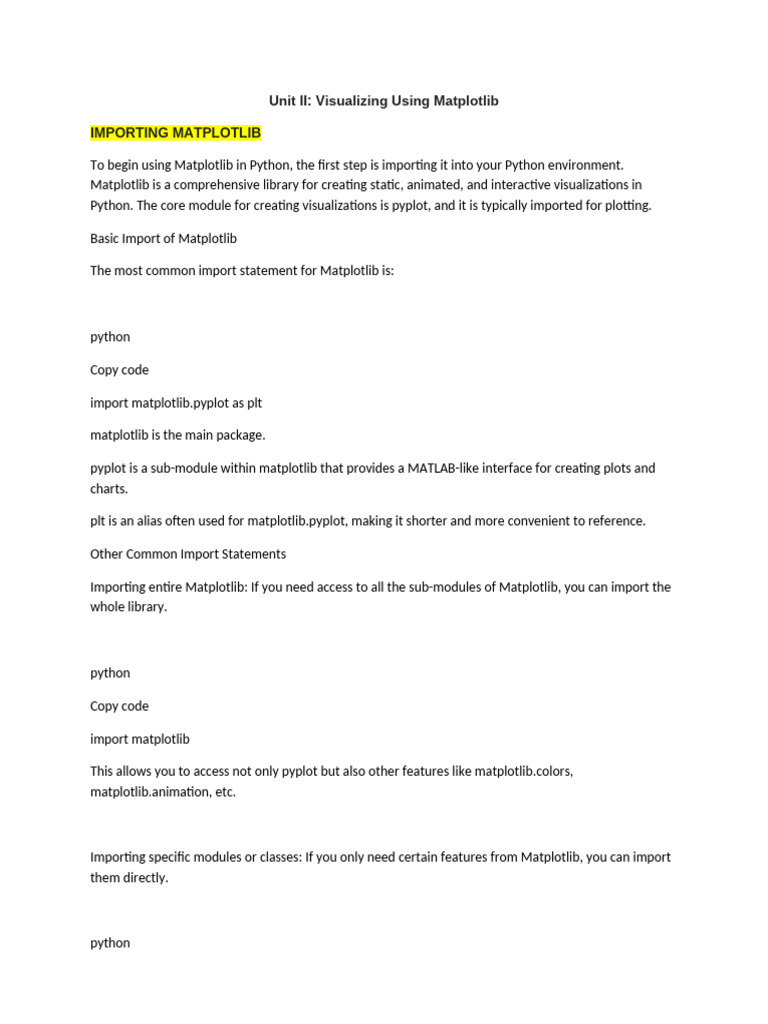 Importing specific modules or classes: If you only need certain features from Matplotlib, you can import