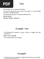 Lists Creating a list and appending List of Lists Opening a dataset file and