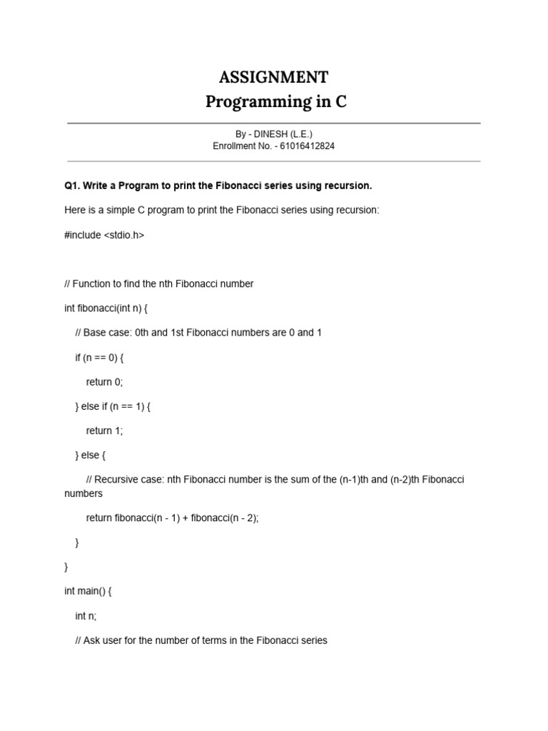Q1. Write a Program to print the Fibonacci series using recursion.