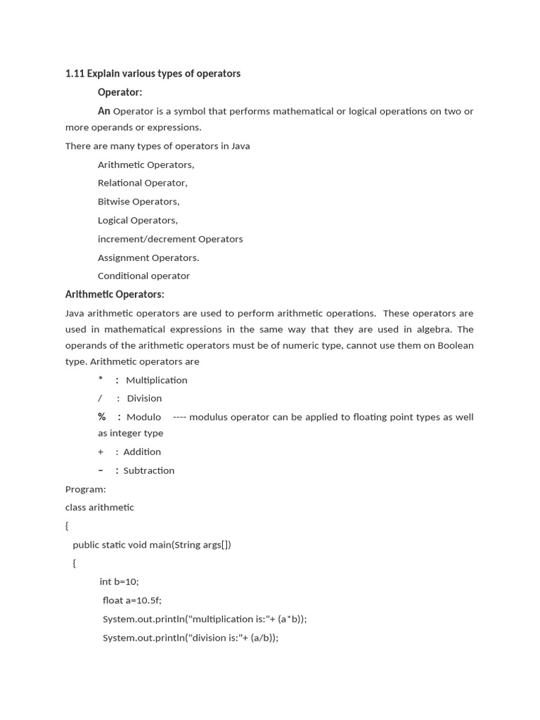– – : Decrement operator, used for decrementing the value by 1. There are two
