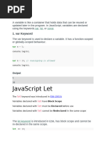 o Introduced in ES6 (ECMAScript 2015), let allows you to declare block-scoped