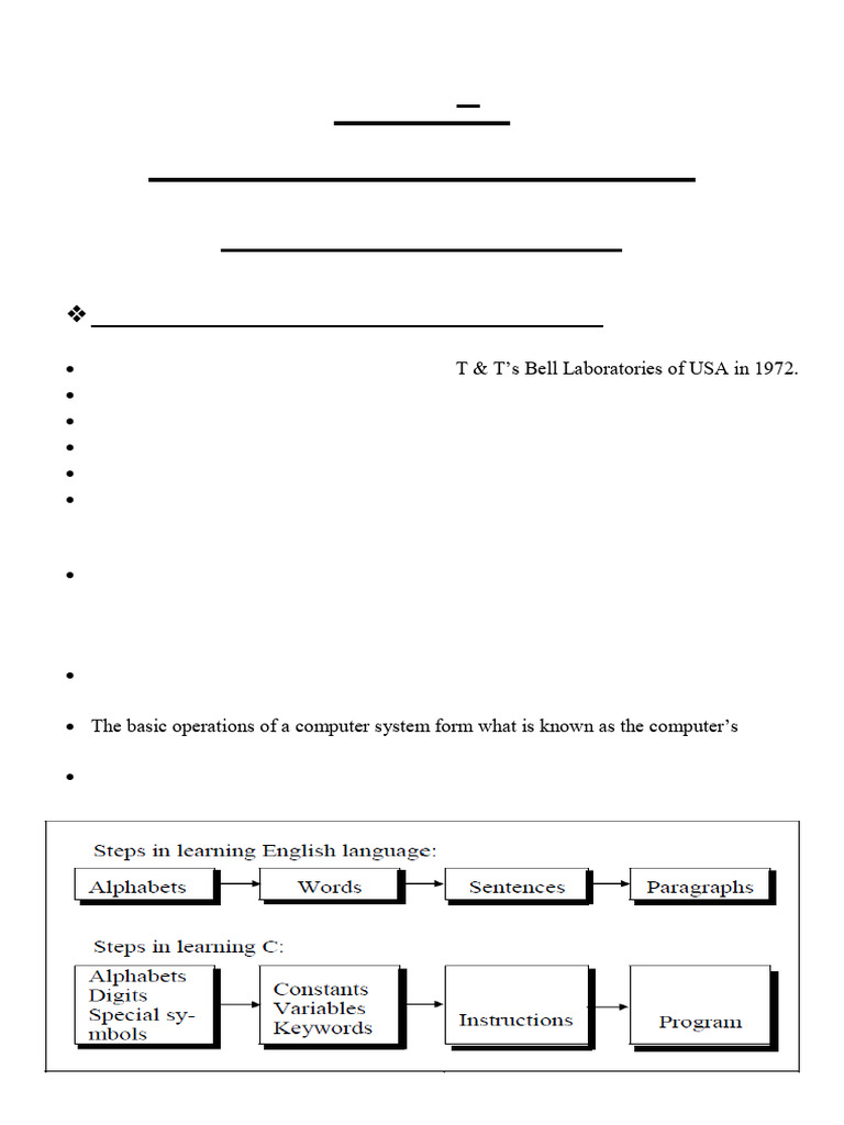 C is a programming language developed at A T & T’s Bell Laboratories of USA in 1972.