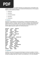 { } → braces, [ ] → brackets, ( ) → parenthesis, ; → semicolon , ( , ) → comma