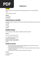 A string is a sequence of characters. Python treats anything inside quotes as a string. This includes letters, numbers, and symbols. Strings can be created using
