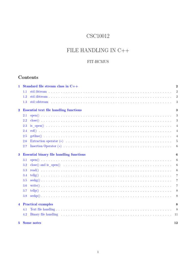1.1 std::fstream . . . . . . . . . . . . . . . . . . . . . . . . . . . . . . . . . . . . . . . . . . . . . . . . . . 2