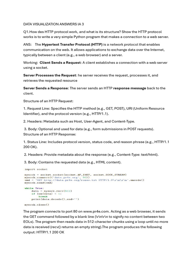 Q1.How des HTTP protocol work, and what is its structure? Show the HTTP protocol