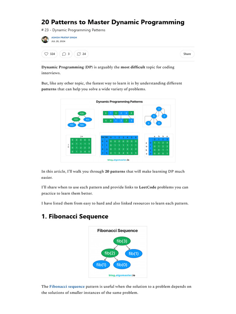 20 Patterns to Master Dynamic Programming