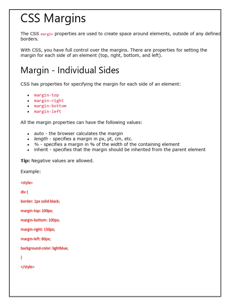 This example lets the left margin of the <p class="ex1"> element be inherited from the
